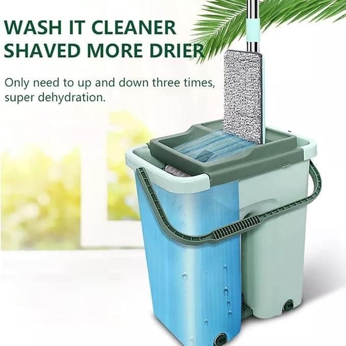 Superior Sturdy and Strong Floor Mop and Bucket Set with two chamber buckets features one WASH and one DRY side. Once washed, the mop head is placed in the dry chamber to remove excess water.