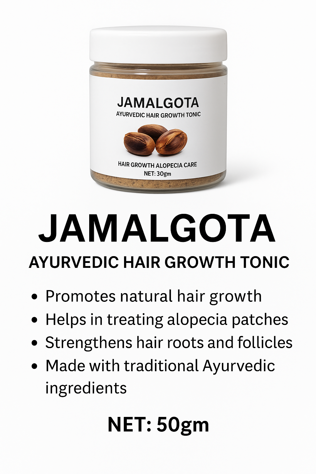Revitalize your hair the natural way with Jamalgota Ayurvedic Hair Growth Powder. Crafted with a potent blend of pure natural herbs, this Ayurvedic formulation is designed to promote hair growth, combat thinning, and nourish your scalp from the roots.